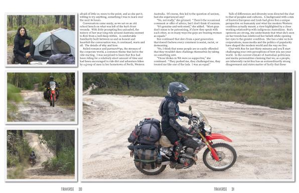 Failed romance and partnerships , the stresses of the corporate world , a common theme that led to the ride starting . I was surprised to learn that Roz had been riding for a relatively short amount of time and had been encouraged to ride dirt and adventure bikes by a group of men in her hometown of Perth , Western