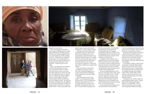 When I mentioned I was heading over the Atlas Mountains on my way to the desert concert , Ayoub had warned me of rain , snow and howling winds due to arrive the next day . He suggested I wait a couple of days for some good weather before I set out up the valley to the Tizi- Tiherhouzine ( 2700m ) and Plateau des Lacs ( 3080m ) passes . He said the weather would get worse the higher I got and that he definitely wouldn ’ t be going up there tomorrow . However , I knew better . I had a great bike , that