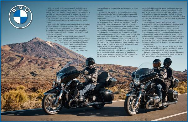 This makes the R 18 Transcontinental ideal for travelling and long-distance rides in American riding style - both for riding solo and with a pillion and luggage . The R 18 B , on the other hand , is designed as a " rider ’ s machine " delivering emotional driving pleasure and ideal for cool touring and cruising .
