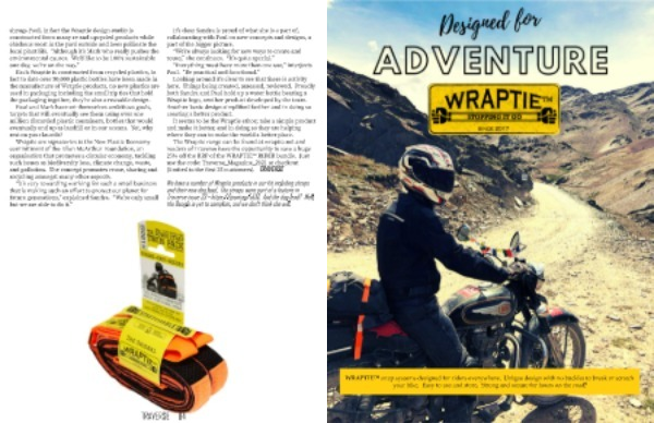 WRAPTIEâ„¢ strap systems designed for riders everywhere . Unique design with no buckles to break or scratch your bike . Easy to use and store . Strong and secure for hours on the road !