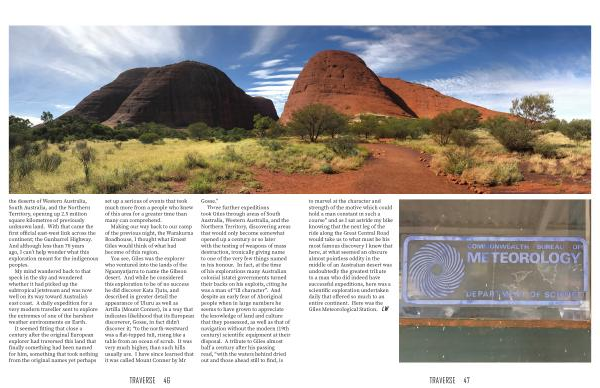 to marvel at the character and strength of the motive which could hold a man constant in such a course ” and as I sat astride my bike knowing that the next leg of the ride along the Great Central Road would take us to what must be his most famous discovery I knew that here , at what seemed an obscure almost pointless oddity in the middle of an Australian desert was undoubtedly the greatest tribute to a man who did indeed have successful expeditions , here was a scientific exploration undertaken daily that offered so much to an entire continent . Here was the Giles Meteorological Station . LW