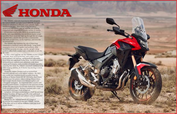 Honda has also released details of a range of accessories to compliment the new CB500X . Details of the bike and more will be available from your local Honda dealer .