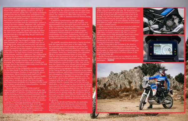 Aprilia was the first to break away from the traditional colour schemes which the motorbike world had been trapped in for decades , introducing fantastic , cuttingedge colour schemes as early as the ’ 90s . In a nod to this tradition and to fully distinguish itself from a visual perspective , the range of Aprilia Tuareg 660 colours includes the Acid Gold version . Already successfully introduced on RS and Tuono , this option best highlights Tuareg 660 ' s innovative design .