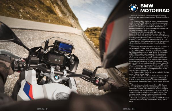 The ConnectedRide Cradle serves not only as a simple cradle for comfortably using the smartphone as a satnav while riding . In addition the navigation map and vehicle data such as lean angle , acceleration , deceleration and much more can be displayed via the BMW Motorrad Connected App using the Multi-Controller .