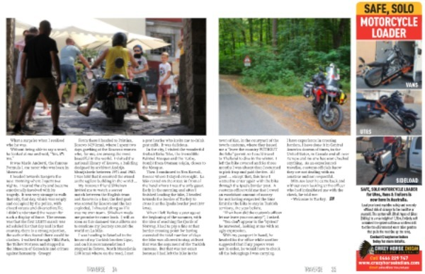 VANS town of Kas , in the courtyard of the town ' s customs , where they issued me a " leave the country WITHOUT the bike " permit so I could travel to Thailand to dive in the winter . I left the bike covered and for three months I was absent then I returned to pick it up and paid the fee . All good ... except that , this time I wanted to enter again with the bike through the Ipsala border post . A customs officer told me that I owed an exorbitant amount of money for not having respected the time limit for the bike to stay in Turkish territory , the year before .