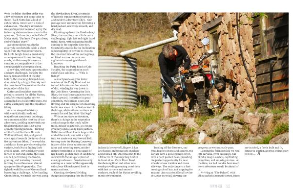 An area steeped in history with convict-built roads and magnificent sandstone buildings , we commenced the next leg of our adventure , pushing on towards our final destination and 1300 acres of motorcycling nirvana . Turning off the Great Northern Rd onto Wollombi Road , dirt , and gravel once again beneath the tyres of our five Adventure bikes . The road dry and dusty , loose gravel covering the surface , each Nutta finding their groove again . Dry and dusty soon turned to wet and slushy , the local council performing roadworks , grading , and watering the road , turning the surface to an almost quagmire like slippery dip . The tight downhill turns of Greens Road becoming a challenge . After battling Greens Road , we made our way along the Hawkesbury River , a contrast of historic transportation methods and modern adventure bikes . Our passage now unhindered , following a hard packed , relatively smooth , and dry road .