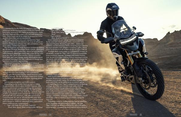 • Tiger 1200 GT Pro and GT Explorer : Road , Rain , Sport , Rider-configurable and Off- Road