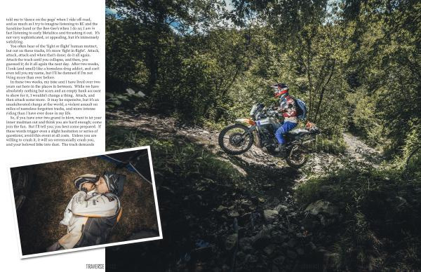In these two weeks , my bike and I have lived over two years out here in the places in between . While we have absolutely nothing but scars and an empty bank account to show for it , I wouldn ’ t change a thing . Attack , and then attack some more . It may be expensive , but it ’ s an unadulterated charge at the world , a violent assault on miles of nameless forgotten tracks , and more intense riding than I have ever done in my life .