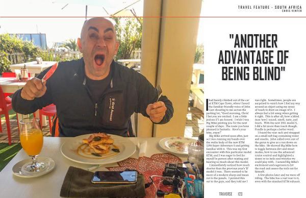 had barely climbed out of the car at KTM Cape Town , when I heard the familiar friendly voice of John Carr shouting to me across the parking lot , “ Good morning , Chris ! I bet you are excited . I am a little jealous if I am honest . I wish I was Big Mike piloting you for the next couple of days . The route you have planned is fantastic . Here ’ s your bike , enjoy !”
