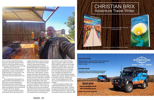 There was just enough time for a final classic West Coast stop at the village of Darling to enjoy a famous Darling brew . We ordered a couple of beers called Bone Crushers and clinked the bottles together . I thanked Big Mike for keeping us on the ground , and we spoke about the bike . All in all , I think I like the R a little more . Mike agreed . I know many would argue this though and find the R version too tall , too rough , and too much of a dirt bike . I choose the dirt over the tar 9 out of 10 times though and Big Mike is the same . The S was interesting and impressive , if a bit of a different ride to what we thought it would be . I can sum it up by saying , the R is for the weekend rider who looks for dirt , the S is more suited to someone wanting the agility of a smaller frame and is going to spend half or more of their riding time , on asphalt . Either way , both KTM models we tried out were super impressive and felt right . As we sat , cold beer in hand , only a short ride back to KTM Cape Town , I realised , we were both sitting staring at the bike . Big Mike was taking in her curves , while I listened to the engine clicking as it cooled . Without turning to face him , I asked , “ What ’ s next mate ?” he just laughed as he told me , he was thinking that very same thought .