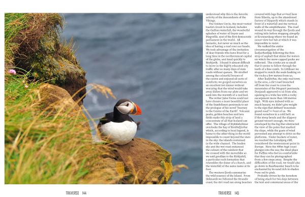 After Ísafjörður , the only real town in the area , a dirt road branched off from the coast to cross the mountains of the Þingeyri peninsula . Dynjandi appeared to us from afar , opening in a wide fan with a rocky escarpment more than 100 metres high . With eyes imbued with so much beauty , we didn ’ t give weight to the sign that defined ' mountain gravel road ’ in front of us . We found ourselves in a cold hell : as if the steep bends and the slippery ground weren ' t enough , we were enveloped by the fog that obstructed the view of the poles that marked the slope , while the gusts of wind prevented any attempt to drive on the platforms . Under buckets of water , we reached the Látrabjarg cliff , considered the westernmost point in Europe . Here the 400m high coast plunges into the sea ; the ideal place for Puffins who feel so comfortable that they can be photographed from a few steps away . Despite the difficulties of the road , we would also go down to Rauðisandur beach to be enchanted by its sand rich in shades from red to pink .