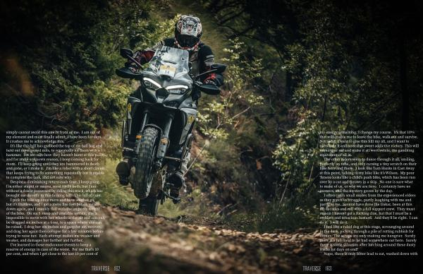 The other riders seem to dance through it all , smiling , perfectly on time , and only cursing a tiny scratch on their bike here and there . I look like Tom Hanks in Cast Away at this point , talking to my bike like it ’ s Wilson . My poor Tenere looks like a child ’ s push bike , which has been run over by a car and thrown in a skip . No one is sure what to make of us , or why we are here . I certainly have no answers , and the mystery grows by the day .