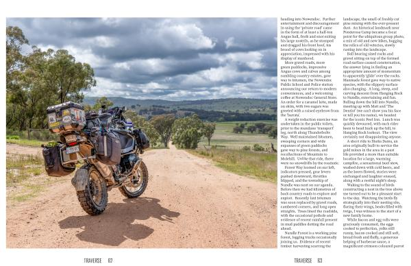 Ball bearing sized rocks and gravel sitting on top of the formed road surface caused consternation , the answer lying in finding an appropriate amount of momentum to apparently ‘ glide ’ over the rocks . Manmade forest gave way to native species , with the slippery surface also changing . A long , steep , and curving descent from Hanging Rock to Nundle , entertaining and fun . Rolling down the hill into Nundle , meeting up with Matt and ‘ The Dentist ’ ( we can ’ t show you his face or tell you his name ), we headed for the iconic Peel Inn . Lunch was quickly devoured , with each rider keen to head back up the hill , to Hanging Rock lookout . The view certainly not disappointing anyone .