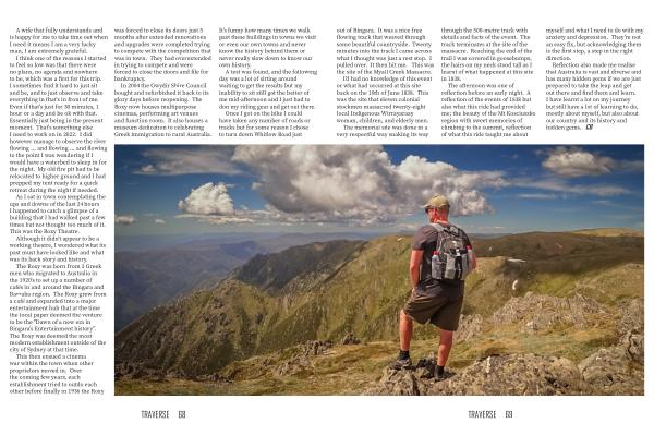 Reflection also made me realise that Australia is vast and diverse and has many hidden gems if we are just prepared to take the leap and get out there and find them and learn . I have learnt a lot on my journey but still have a lot of learning to do , mostly about myself , but also about our country and its history and hidden gems . CB