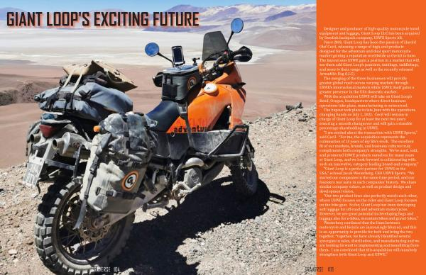 Since 2008 , Giant Loop has been the passion of Harold Olaf Cecil , releasing a range of high-end products designed for the adventure and dual sport motorcycle market gaining a reputation worldwide as the kit to have . The buyout sees USWE gain a position in a market that will see them add Giant Loop ’ s panniers , tankbags , saddlebags , and more to their range as well as the recently released Armadillo Bag ( LLC ).