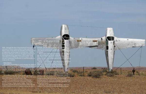 Not far north of Marree is the otherworldly experience that is Mutonia , a sculpture park at Alberrie Creek . With pieces and parts found from damaged vehicles amongst the Oodnadatta Track , Mutonia is a collection of the unique . Plane Henge stands proud , a homage to travellers of the sky , while a sculpture resembling Saint Christopher seems to bless those who travel in what also suggests a social comment on the Catholic religion .