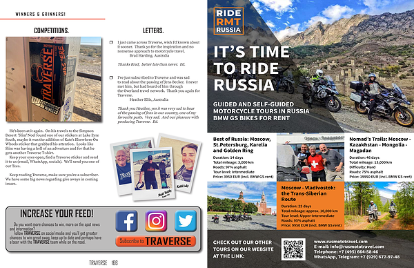 I just came across Traverse , wish I ' d known about it sooner . Thank yo for the inspiration and no nonsense approach to motorcycle travel .