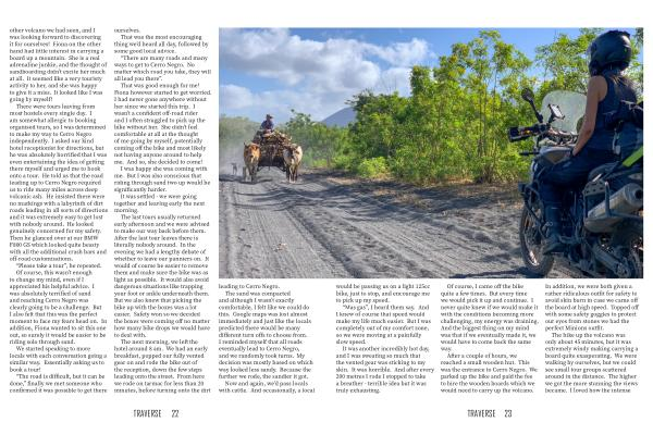 There were tours leaving from most hostels every single day . I am somewhat allergic to booking organised tours , so I was determined to make my way to Cerro Negro independently . I asked our kind hotel receptionist for directions , but he was absolutely horrified that I was even entertaining the idea of getting there myself and urged me to book onto a tour . He told us that the road leading up to Cerro Negro required us to ride many miles across deep volcanic ash . He insisted there were no markings with a labyrinth of dirt roads leading in all sorts of directions and it was extremely easy to get lost with nobody around . He looked genuinely concerned for my safety . Then he glanced over at our BMW F800 GS which looked quite beasty with all the additional crash bars and off-road customisations . “ Please take a tour ”, he repeated . Of course , this wasn ’ t enough to change my mind , even if I appreciated his helpful advice . I was absolutely terrified of sand and reaching Cerro Negro was clearly going to be a challenge . But I also felt that this was the perfect moment to face my fears head on . In addition , Fiona wanted to sit this one out , so surely it would be easier to be riding solo through sand .