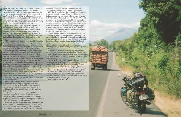 “ After a while , when you ’ ve seen the highest mountains , the whitest sandy beaches fringed with palm trees and turquoise sea ; the most enchanting forests and the widest deserts , it ’ s people that are the most important- the stories they have to tell and the way they live their lives . Beauty is in the ugliest of places . Love is universal and under our noses . Most people in the twenty countries I ’ ve travelled through have been kind . If you trust people and believe that all will be well , it seems that positivity is attracted to you .” That ’ s what I ’ d learned . JF