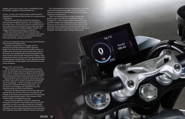 “ We ’ re incredibly proud to be able to share such positive outcomes from the completion of Project Triumph TE 1 , where the prototype demonstrator has exceeded many of our initial targets and expectations . Everyone on the team is thrilled with the results we ’ ve achieved with our partners , and how the outcomes of the project will feed into the electric future to come from Triumph .” Nick Bloor , CEO , Triumph Motorcycles .