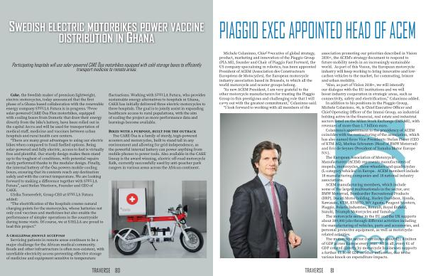 “ As new ACEM President , I am very grateful to the other motorcycle manufacturers for trusting the Piaggio Group in this prestigious and challenging role that I will carry out with the greatest commitment ,” Colaninno said . “ I look forward to working with all members of the association promoting our priorities described in Vision 2030 +, the ACEM ' s strategy document to respond to future mobility needs in an increasingly sustainable world . As part of this Vision , the European motorcycle industry will keep working to bring innovative and lowcarbon vehicles to the market , for commuting , leisure and urban mobility .