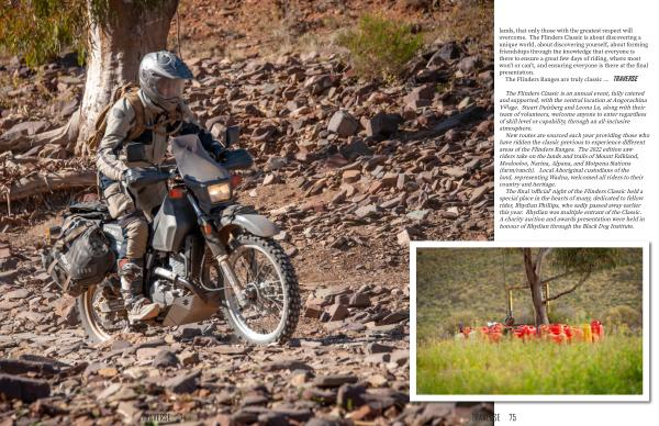 lands , that only those with the greatest respect will overcome . The Flinders Classic is about discovering a unique world , about discovering yourself , about forming friendships through the knowledge that everyone is there to ensure a great few days of riding , where most won ’ t or can ’ t , and ensuring everyone is there at the final presentation . The Flinders Ranges are truly classic … TRAVERSE