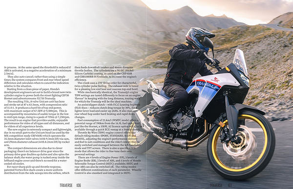 While mechanically identical , the Transalp ’ s engine TBW settings are tuned differently to focus on an engine ‘ flavour ’ in keeping with the long distance , touring work for which the Transalp will be the ideal machine .
