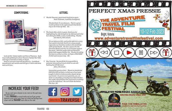 Look at this ! Great readers and fans of Traverse . Each issue we ' ll publish pics of our Traverse ' family ' like Vikki and Ang in Australia or Vishu in Nepal .