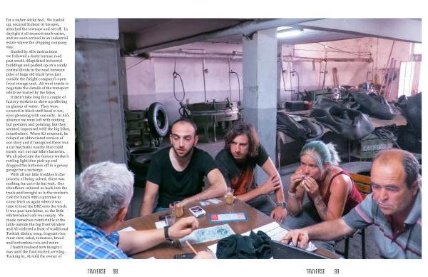 With all our bike troubles in the process of being solved , there was nothing for us to do but wait . Our chauffeurs ushered us back into the truck and brought us to the worker ' s café for lunch with a promise to come fetch us again when it was time to load the DRZ onto the truck . It was past lunchtime , so the little whitewashed café was empty . We made ourselves comfortable at the table outside the big front window and Ali ordered a feast of traditional Turkish dishes ; soup , fragrant rice , meat stew , salad , tomatoes , bread and bottomless cola and water .