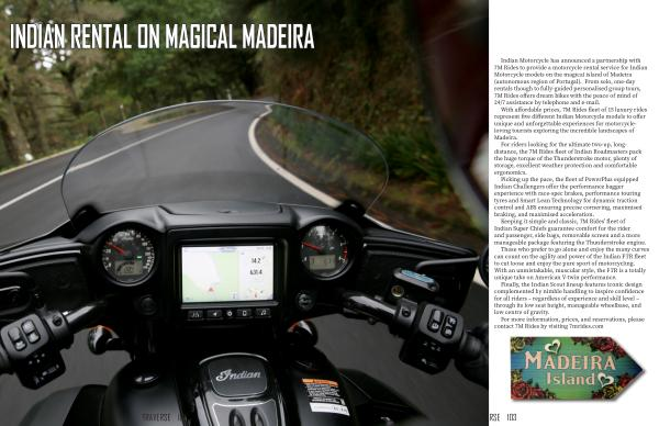 Indian Motorcycle has announced a partnership with 7M Rides to provide a motorcycle rental service for Indian Motorcycle models on the magical island of Madeira ( autonomous region of Portugal ). From solo , one-day rentals though to fully-guided personalised group tours , 7M Rides offers dream bikes with the peace of mind of 24 / 7 assistance by telephone and e-mail .