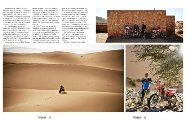 With daybreak we leave and are forced to take the paved road to reviver lost time . Once in Foum Zguid we are able to pick up out planned route and enter the Draa Valley via a nice dirt road . It ’ s a stony track that undulates across the landscape , sometimes flat , mostly wavey . Sand is occasionally present at the beginning of the track .