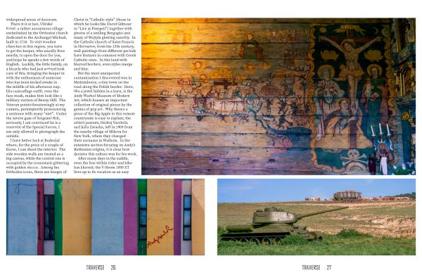 There it is at last , Uličské Krivé : a rather anonymous village embellished by the Orthodox church dedicated to the Archangel Michael , built in 1718 . To visit wooden churches in this region , you have to get the keeper , who usually lives nearby , to open the door for you , and hope he speaks a few words of English . Luckily , the little family , on a bicycle who had just arrived took care of this , bringing the keeper in with the enthusiasm of someone who has been kicked awake in the middle of his afternoon nap . His camouflage outfit , even the face mask , makes him look like a military version of Benny Hill . The Veteran points threateningly at my camera , peremptorily pronouncing a sentence with many “ niet ”. Under the severe gaze of Sergeant Hill , seriously , I am convinced he is a reservist of the Special Forces , I am only allowed to photograph the outside .