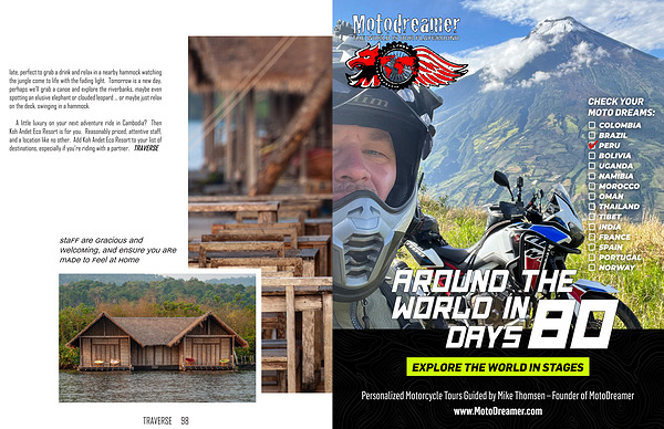 A little luxury on your next adventure ride in Cambodia ? Then Koh Andet Eco Resort is for you . Reasonably priced , attentive staff , and a location like no other . Add Koh Andet Eco Resort to your list of destinations , especially if you ’ re riding with a partner . TRAVERSE