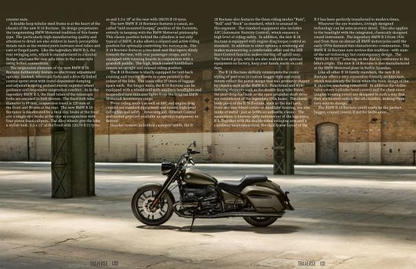 A double-loop tubular steel frame is at the heart of the chassis of the new R 18 Roctane . Its design perpetuates the longstanding BMW Motorrad tradition of this frame type . The particularly high manufacturing quality and attention to detail are also evident in barely perceptible details such as the welded joints between steel tubes and cast or forged parts . Like the legendary BMW R 5 , the rear swinging arm , which is manufactured in a similar design , encloses the rear axle drive in the same style using bolted connections .