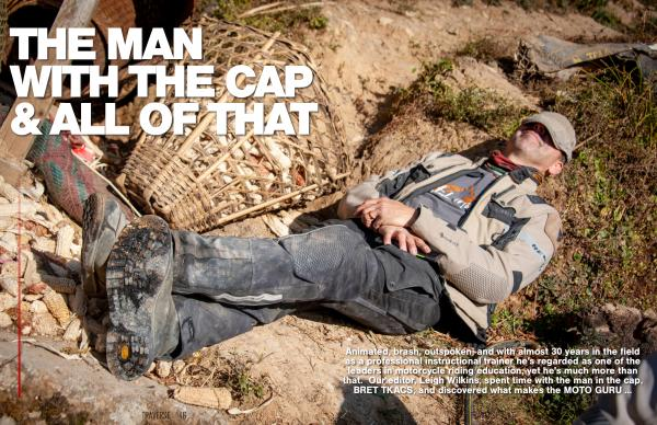 Animated , brash , outspoken , and with almost 30 years in the field as a professional instructional trainer he ' s regarded as one of the leaders in motorcycle riding education , yet he ' s much more than that . Our editor , Leigh Wilkins , spent time with the man in the cap , BRET TKACS , and discovered what makes the MOTO GURU ...