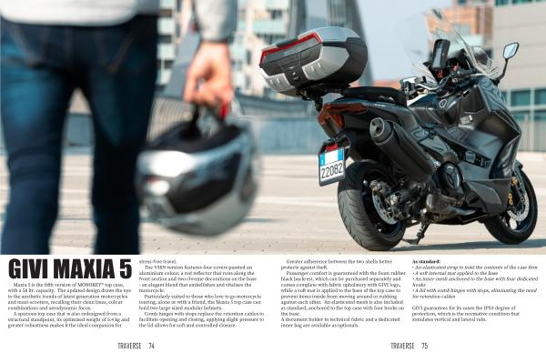 Maxia 5 is the fifth version of MONOKEY ® top case , with a 58 ltr . capacity . The updated design draws the eye to the aesthetic trends of latest generation motorcycles and maxi-scooters , recalling their clean lines , colour combinations and aerodynamic focus .