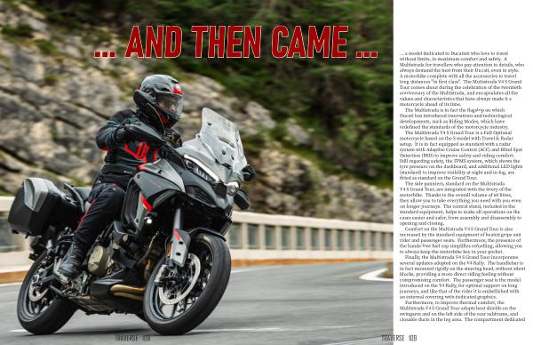... a model dedicated to Ducatisti who love to travel without limits , in maximum comfort and safety . A Multistrada for travellers who pay attention to details , who always demand the best from their Ducati , even in style . A motorbike complete with all the accessories to travel long distances " in first class ". The Multistrada V4 S Grand Tour comes about during the celebration of the twentieth anniversary of the Multistrada , and encapsulates all the values and characteristics that have always made it a motorcycle ahead of its time .
