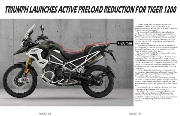 Triumph Motorcycles has released a brand-new enhancement to its advanced Showa semi-active suspension across the all-new Tiger 1200 range , which was first launched in November 2021 .
