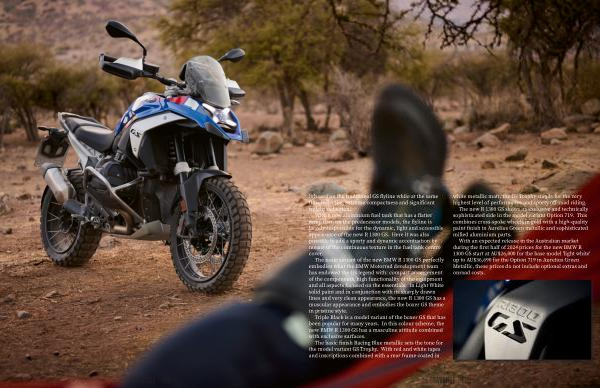 The basic variant of the new BMW R 1300 GS perfectly embodies what the BMW Motorrad development team has endowed the GS legend with : compact arrangement of the components , high functionality of the equipment and all aspects focused on the essentials . In Light White solid paint and in conjunction with its sharply drawn lines and very clean appearance , the new R 1300 GS has a muscular appearance and embodies the boxer GS theme in pristine style .