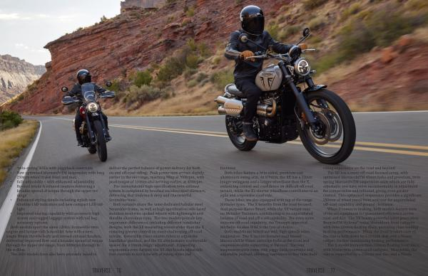 Both models sport the same 1200cc Bonneville twin engine and torque-rich Scrambler tune with a new , single 50mm throttle body and revised exhaust headers , delivering improved flow and a broader spread of torque through the upper rev-range , from 5000rpm through to the redline .