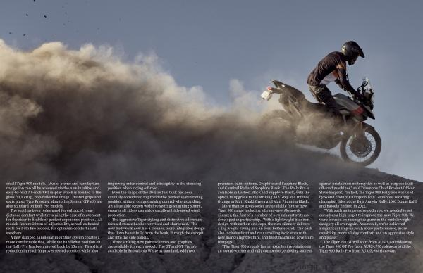 on all Tiger 900 models . Music , phone and turn by turn navigation can all be accessed via the new intuitive and easy-to-read 7.0-inch TFT display which is bonded to the glass for a crisp , non-reflective image . Heated grips and seats plus a Tyre Pressure Monitoring System ( TPMS ) are also standard on both Pro models .