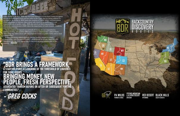 riders aspire to protect . BDR says that land managers across their routes recognise this form of managed travel and see value in the roads that are being utilised for recreation . In doing so , BDR funds the creation of Public Safety Announcement ( PSA ) campaigns to educate riders about safe travel in the backcountry and responsible use of public roads . BDR also sees it as their responsibility to effectively communicate to BDR riders the importance of road closures , wildfires , and weather events .