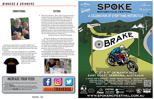 0 Hello Traverse team . Wow ! What an important issue number 38 is , the article Children of Rohingya is so powerful , and heartbreaking ! How can we live in a world where people are discarded like trash ? Is this what we have become as a species ? It ' s heart warming that bike travellers like Kiran Kreer have taken the time to show some compassion and want to help the people that most others have turned there backs on ... and thank you to your publication for highlighting such a cause and showing your readers that motorcycle travel is about learning and enriching the lives of so many more . Thank you .