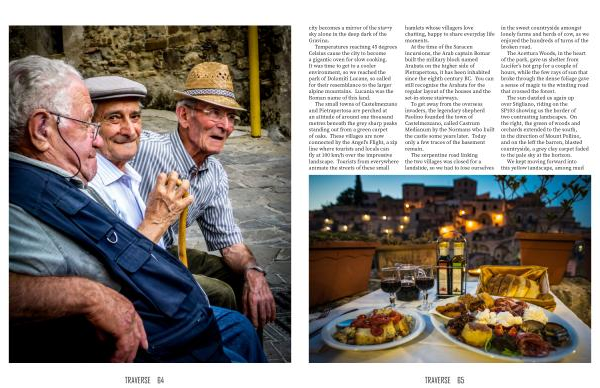 The small towns of Castelmezzano and Pietrapertosa are perched at an altitude of around one thousand metres beneath the grey sharp peaks standing out from a green carpet of oaks . These villages are now connected by the Angel ’ s Flight , a zip line where tourists and locals can fly at 100 km / h over the impressive landscape . Tourists from everywhere animate the streets of these small
