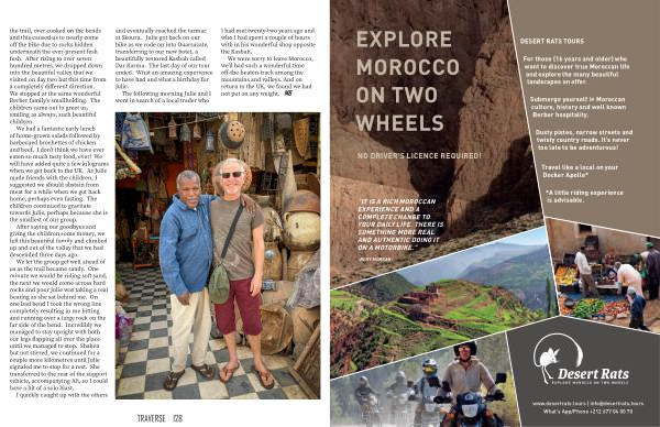 “ IT IS A RICH MOROCCAN EXPERIENCE AND A COMPLETE CHANGE TO YOUR DAILY LIFE . THERE IS SOMETHING MORE REAL AND AUTHENTIC DOING IT ON A MOTORBIKE .”