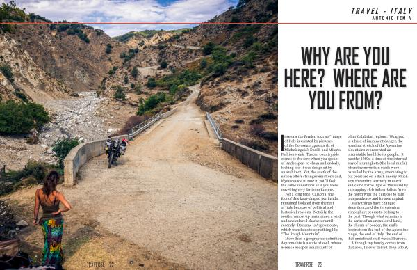 More than a geographic definition , Aspromonte is a state of soul , whose essence escapes inhabitants of other Calabrian regions . Wrapped in a halo of imminent danger , the terminal stretch of the Apennine Mountains represented an inscrutable land like its people . It was the 1980s , a time of the internal war of ‘ ndrangheta ( the local mafia ), when the mountain roads were patrolled by the army , attempting to put pressure on a dark enemy which kept the entire territory in check and came to the light of the world by kidnapping rich industrialists from the north with the purpose to gain independence and its own capital .
