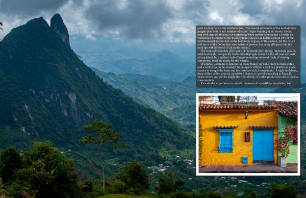 The roads of Colombia offer some of the worlds best riding . Mountain passes , seldom straight , are quickly replaced with jungle tracks for the off road inclined , all are joined by a spidery web of interconnecting series of roads of varying conditions , most are made for two wheels .