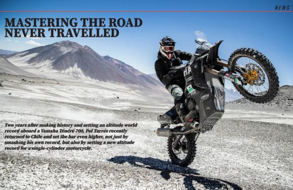 Two years after making history and setting an altitude world record aboard a Yamaha Ténéré 700 , Pol Tarrés recently returned to Chile and set the bar even higher , not just by smashing his own record , but also by setting a new altitude record for a single-cylinder motorcycle .