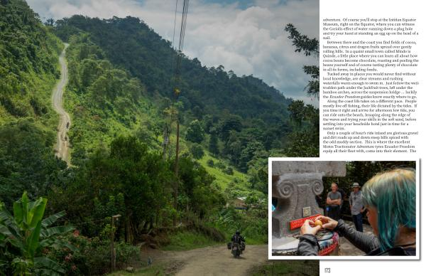 Only a couple of hour ’ s ride inland are glorious gravel and dirt roads up and down steep hills spiced with the odd muddy section . This is where the excellent Motoz Tractionator Adventure tyres Ecuador Freedom equip all their fleet with , come into their element . The
