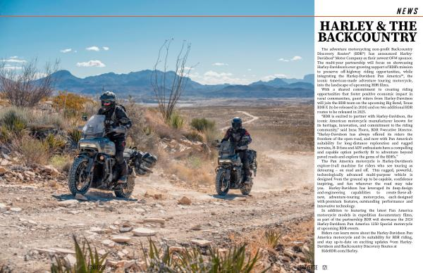 Riders can learn more about the Harley-Davidson Pan America motorcycle and its suitability for BDR riding , and stay up-to-date on exciting updates from Harley- Davidson and Backcountry Discovery Routes at